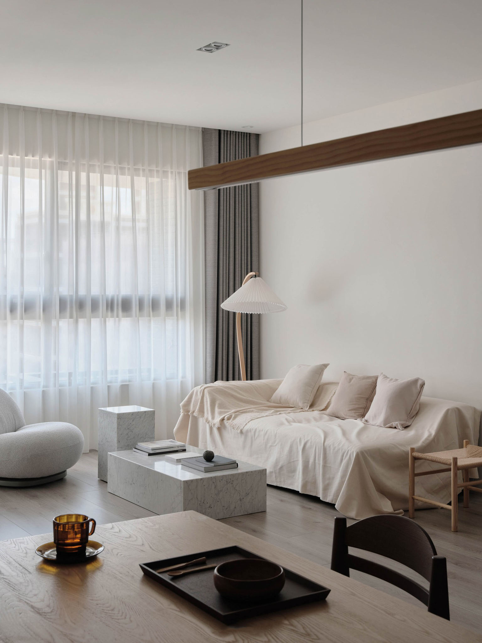 格柵不僅令空間更加通透,還賦予了空間一種獨(dú)特的美感,仿佛將大自然的風(fēng)景引入屋內(nèi)。木作元素則強(qiáng)調(diào)了自然材料的質(zhì)感,為居室增添了溫暖和親近自然的氣息。