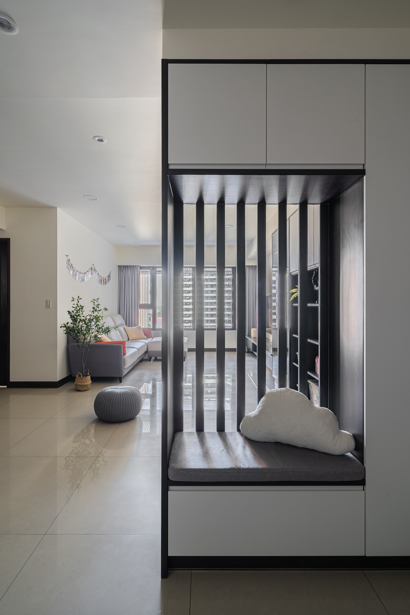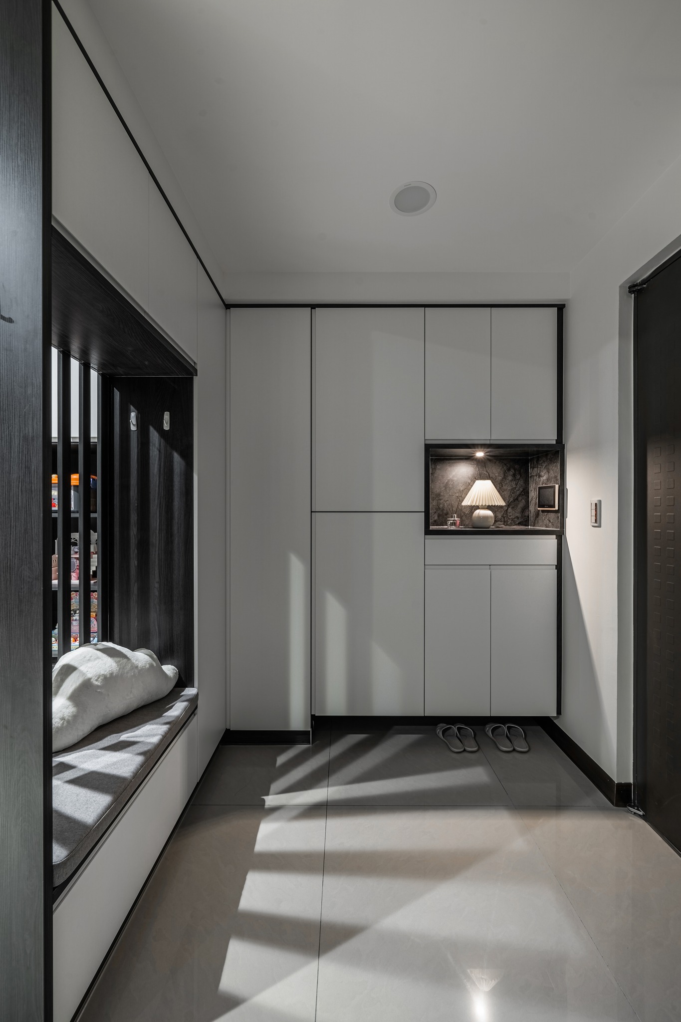 進(jìn)門即見(jiàn)的玄關(guān)區(qū)域是整個(gè)家居的第一印象,為了使空間更具現(xiàn)代感,我們采用了現(xiàn)代風(fēng)格的設(shè)計(jì)理念。特別設(shè)置了玄關(guān)落塵區(qū),通過(guò)巧妙地運(yùn)用穿鞋椅搭配格柵條,不僅實(shí)現(xiàn)了鞋履的整齊收納,還讓自然光線可直接穿透至玄關(guān)區(qū)域,保持了空間的通透明亮,同時(shí)也不會(huì)影響光源的投射效果。
