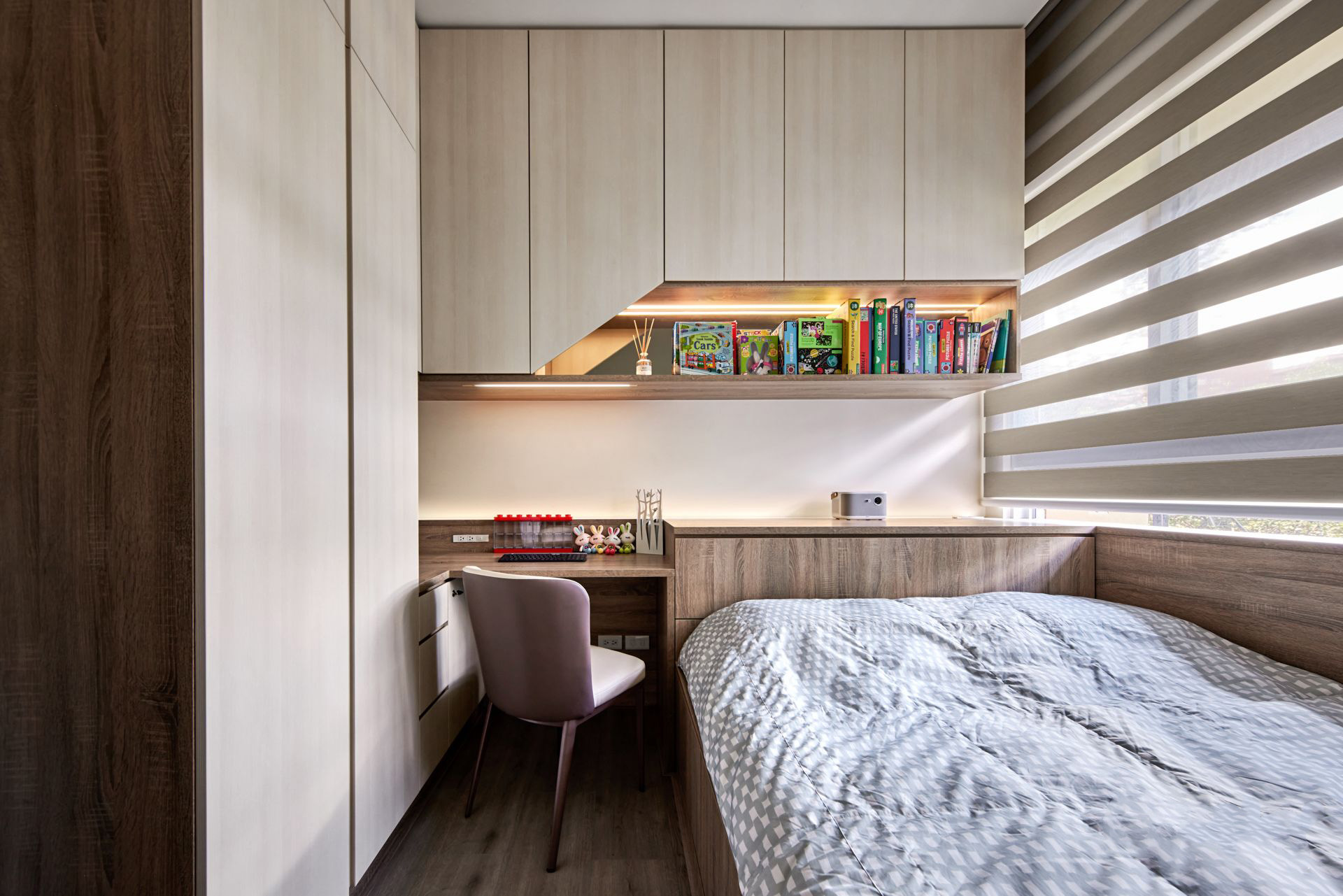避免過多的家具,確保臥室空間簡潔有序。床的擺放最好避免直接對著門,以增加安全感。