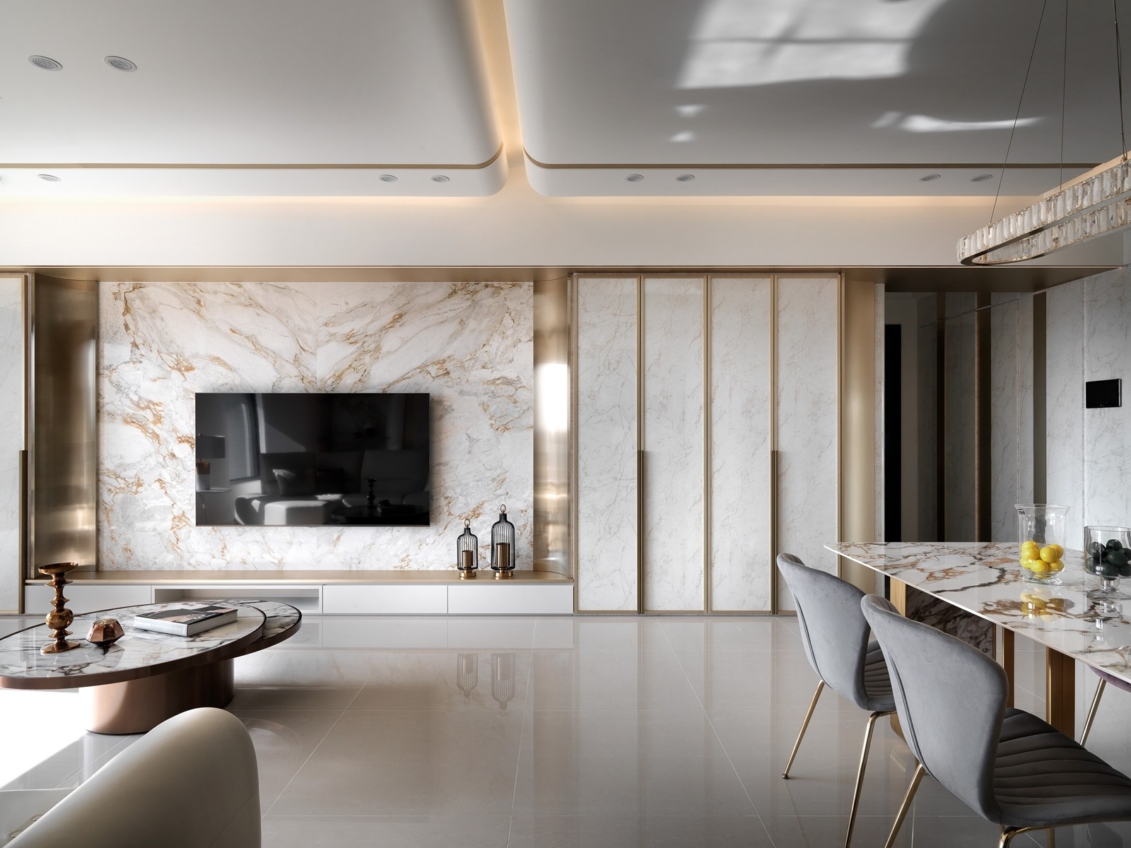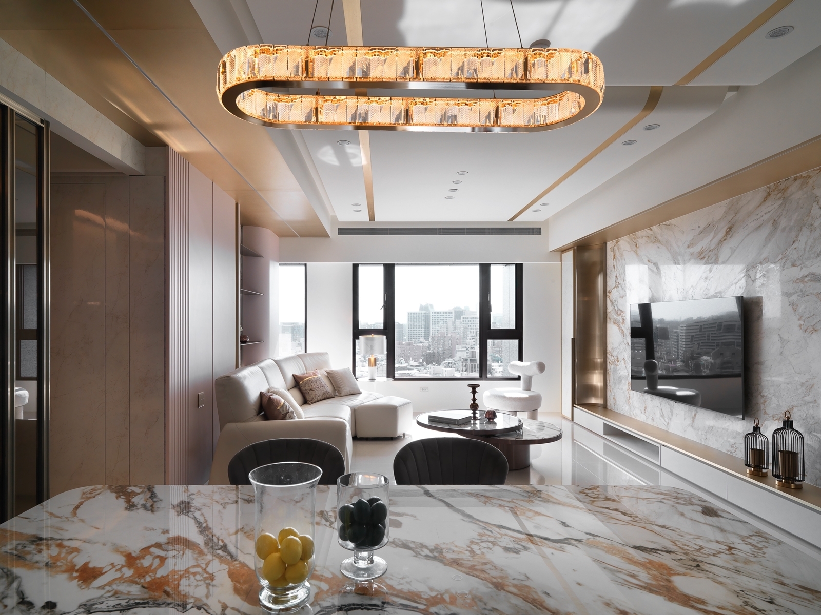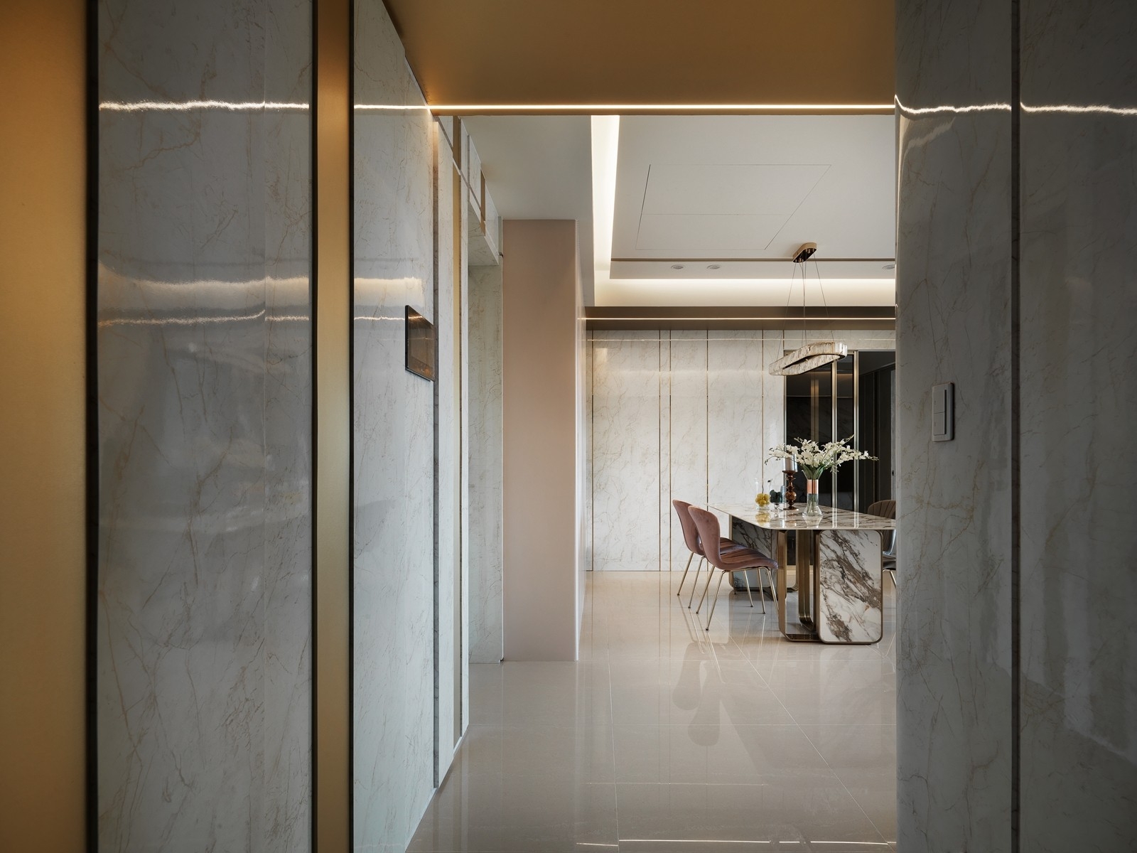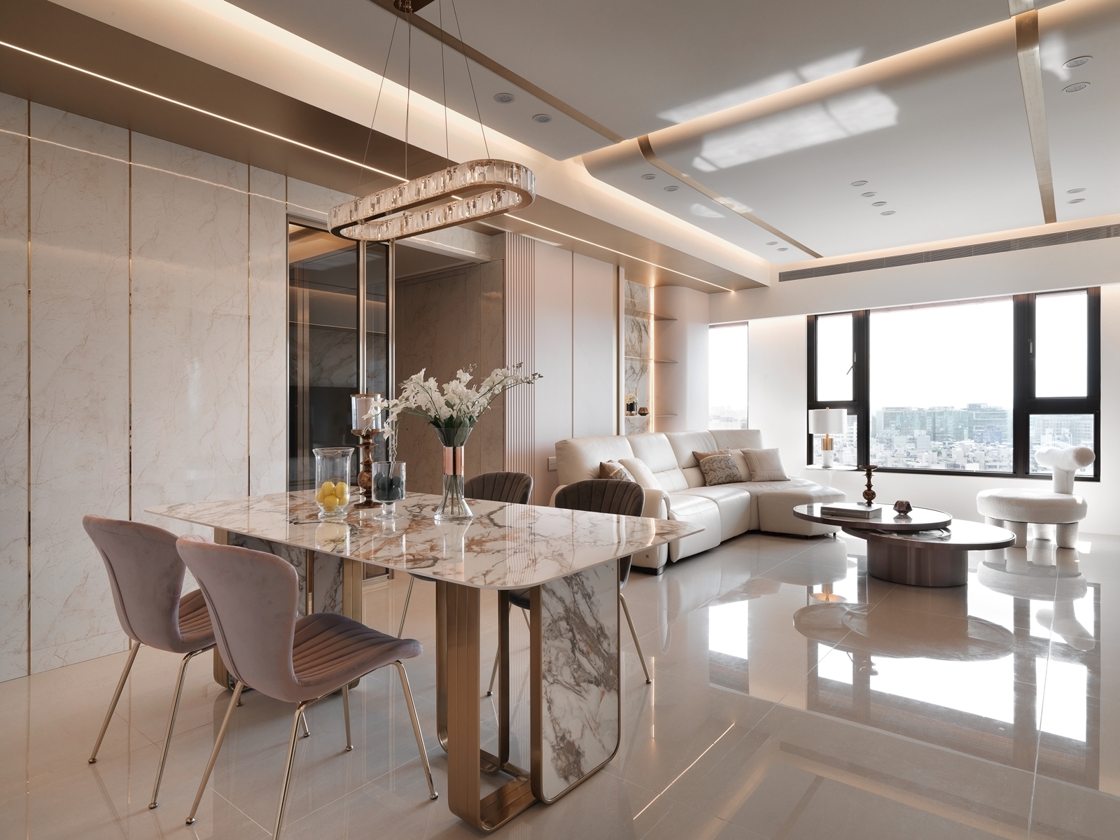 在光帶的牽引與渲染之下,建構(gòu)出一個(gè)奢華又兼具藝術(shù)底蘊(yùn)的美感空間,為整個(gè)家居增添了一抹奢華光影。