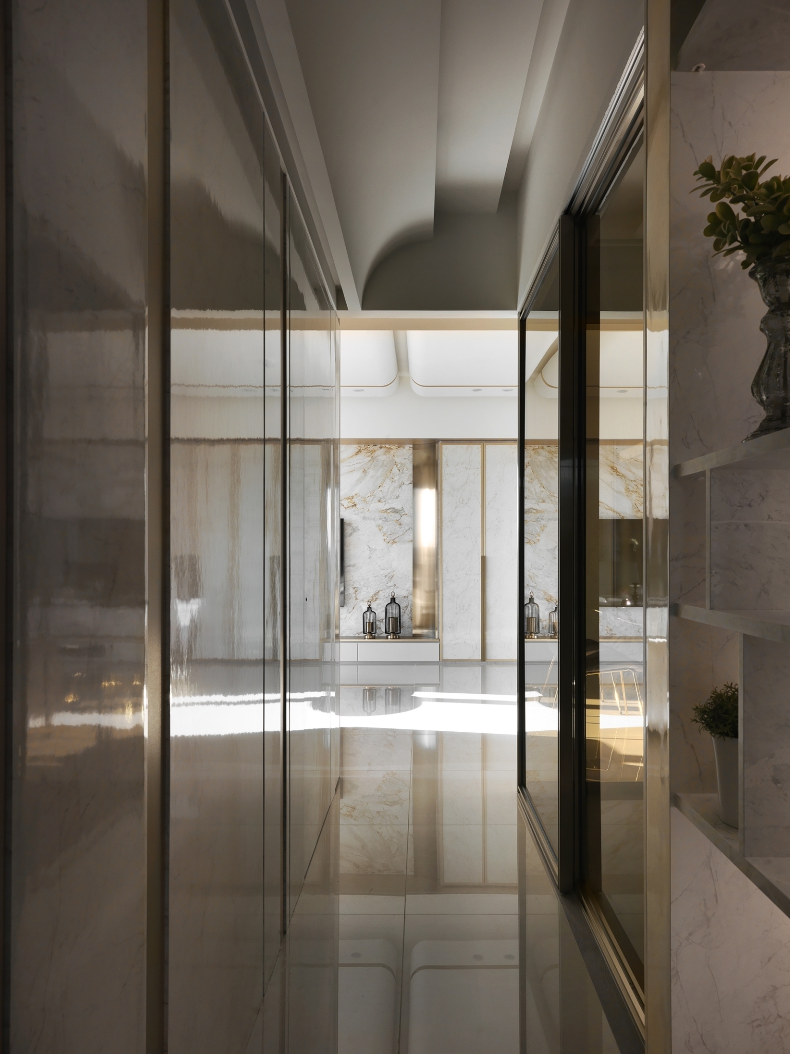 閃爍著金屬光澤的裝飾元素在不同的場(chǎng)域中扮演起串聯(lián)連接的角色,以不同的姿態(tài)賦予空間更為豐富的層次變化。