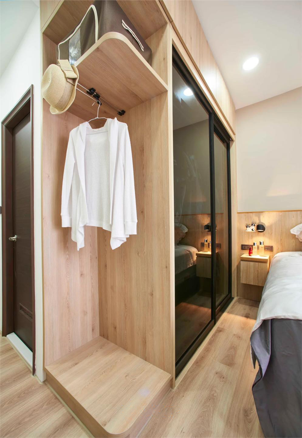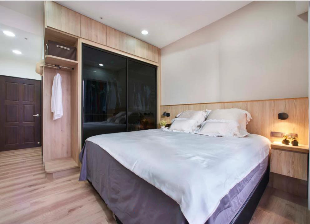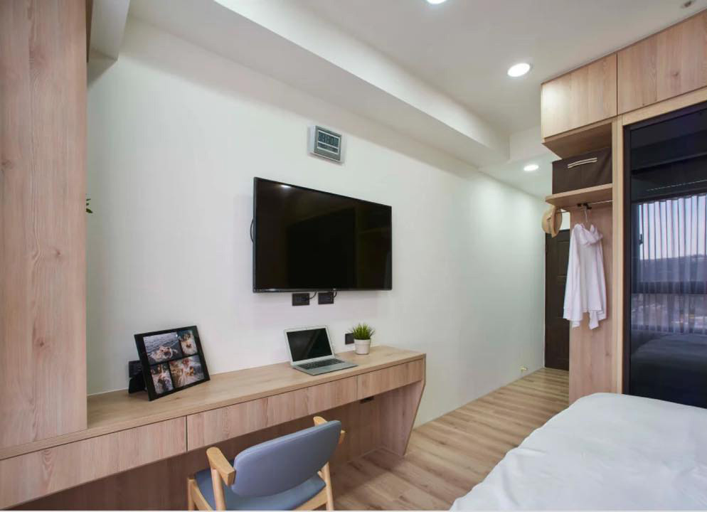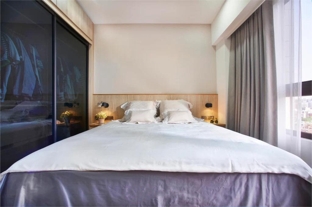 小臥室的規(guī)劃需要精心考慮每一寸空間,而推拉門、懸空床頭柜和床尾書桌的設(shè)計(jì),不僅使空間合理利用,同時(shí)也為居住者帶來(lái)了更為便利和愉悅的居住體驗(yàn)。這是一個(gè)小而巧妙的空間,充滿了溫馨與智慧。